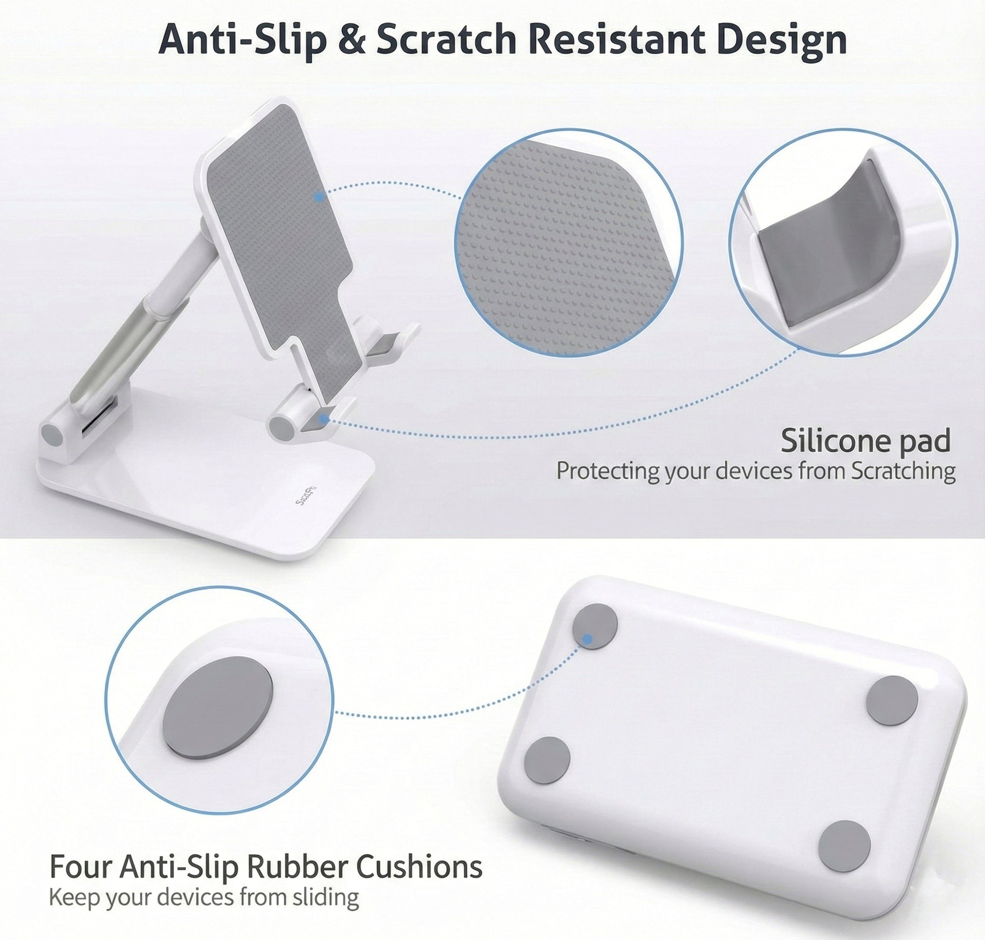 This portable, height-adjustable folding stand is designed for effortless hands-free use of your phone or tablet. it folds flat for easy carrying—perfect for home, office, travel, or study sessions.